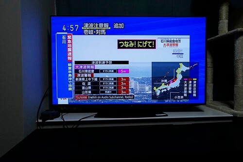 テレビ局も大損害だろうが仕方ない。画面には「津波警報」が表示されていた。