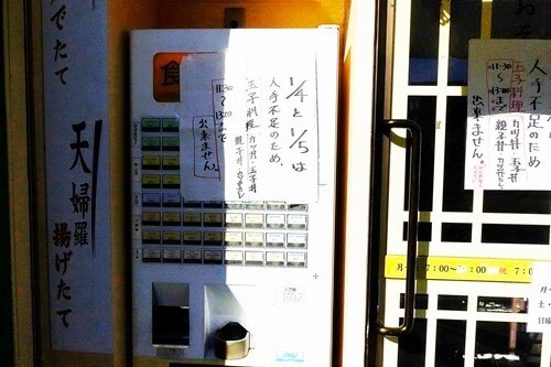 蕎麦屋では券売機で好みのソバを発券し、それをカウンターに出す。しばらくして「天婦羅そばの方」と呼ばれるので、取りに行く。だから蕎麦屋では言葉は不要だ。