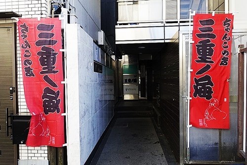 すると右手に「ちゃんこ 三重ノ海」の赤い幟が立っていた。