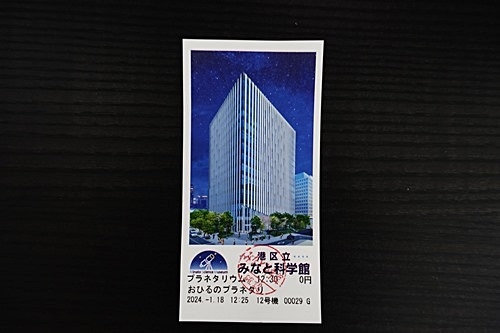 「港区立みなと科学館」に正面入口から中に入ったら、係の女性が声を掛けて来た。「なんだろう?」と思ったら、彼女が『間もなくプラネタリウムが始まります』と言った。私は予定していなかったので不審そうな顔をしたのか、続けて『いまの時間は無料です』と言った。無料という単語に弱い私は、すぐに2階に上って行った。
