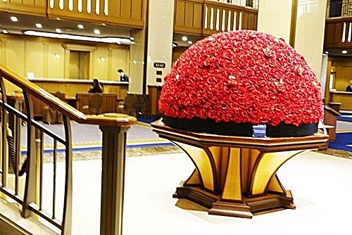入口から入ったロビーには、真っ赤なバラが置かれている。