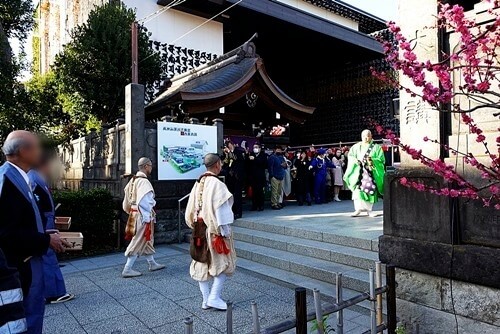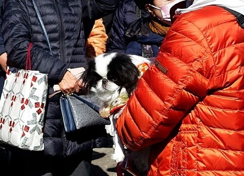 芝増上寺でのことであるが、年男・年女の後に犬を抱えた40~50人の集団が続いた。