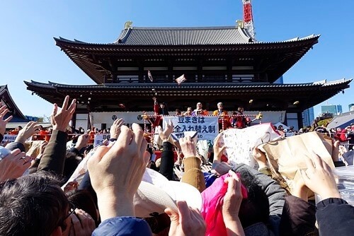 2月3日は「節分祭」で、各寺社などで「豆まき」が行なわれた。