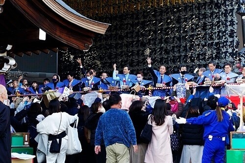 不測の事故を避けるために警備員が多く、豆まきは入れ替え制で4回、行われる。