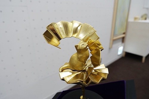 学生の作品は奇抜で面白い。金色の猫の作品があったので、解説を読んでみた。