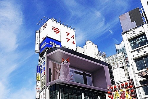 これは2021年7月のブログで「新宿に巨大な猫出現」というブログを書いた、あの時の街頭ビジョンの猫である。以前と放映方法が違い、コマーシャルの間に短く猫が登場する。