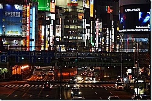 新宿西口大ガードの向こうに歌舞伎町のネオンが見える。