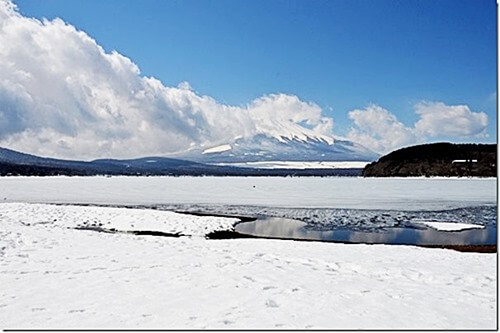 山中湖の平野地区はまだ多くの雪が残っていて、湖畔には出られない。