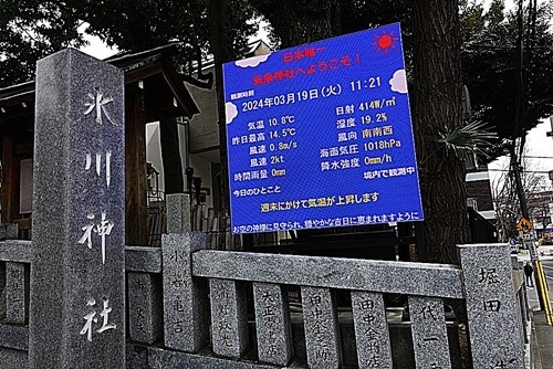氷川神社の入口の「気象ビジョン」
