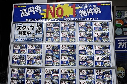 また若者には住みやすい町らしく、不動産屋の看板をみると「ワンルーム・家賃4万円」からある。物価も安いようだし、新宿までも近い。とても面白い魅力的な町だった。