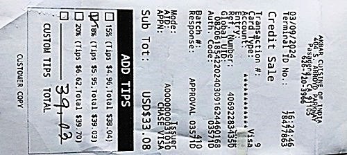 先日行ったレストランでは、人間ウエイトレス/ウエイターがいたが、カードで支払う時、既に「18%ならいくら、20%ならいくら」と印刷されているので、それを参考にしてチップ額を決めれば良い。