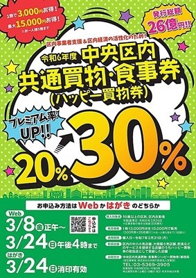 中央区からのお知らせで、今年も「ハッピー買物券」のお知らせがあった。