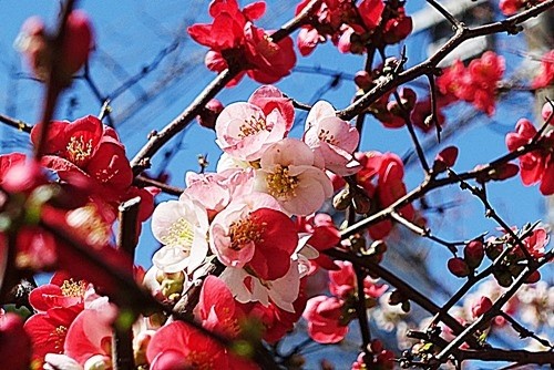 1本の木から赤と白の花が咲くのが、とても不思議である。