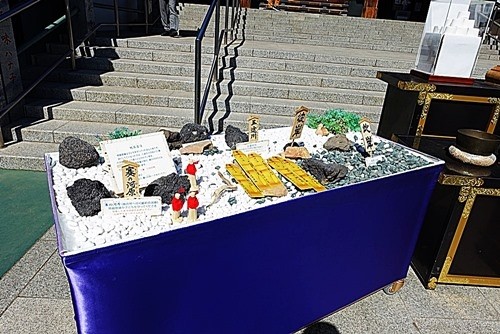 不動尊の門を入って本堂へ向かう石段の前に、面白いものが並んでいた。