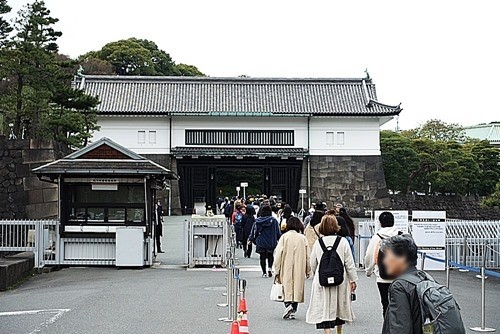 例年と違いまだ桜の開花宣言が出ていないので、手荷物検査場で待たされることも無かった。大声で話す人も無く、静かに並んで宮城内に入って行った。