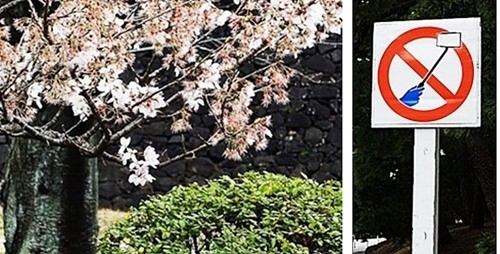 外国ではあまり「お花見」の習慣が無いようなので、皇宮警察も過去の経験から「桜の花に触ったり」、「自撮り棒で撮影する人」が多く出ることを恐れているのだろう。