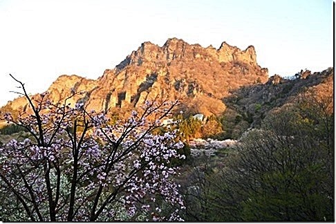 向かいの谷の傾斜に植えられた桜が、素晴らしい景観である。