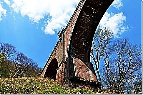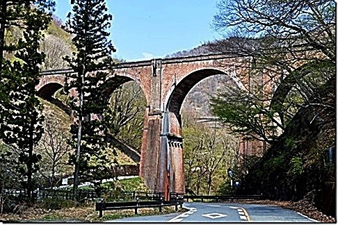 途中には「眼鏡橋」という、アプト式鉄道が通っていた頃の名残の陸橋がある。