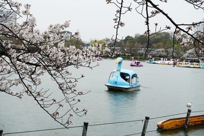 こちらも雨というのに、大勢の花見客で混雑していた。
