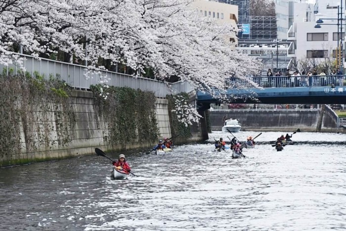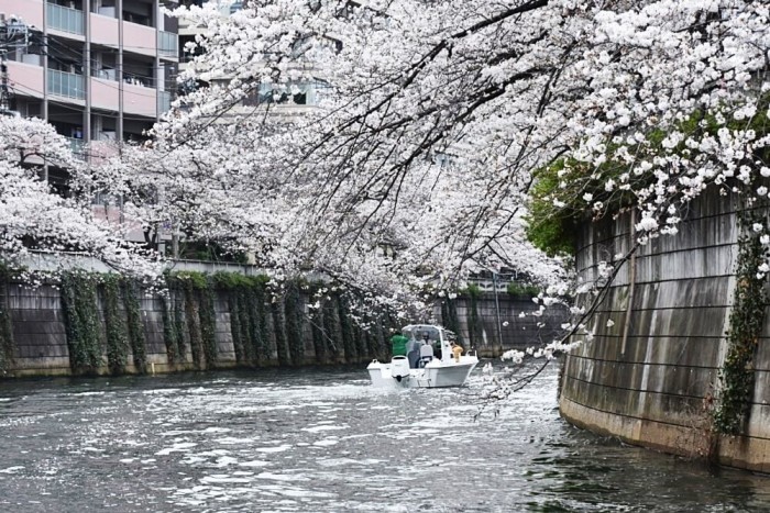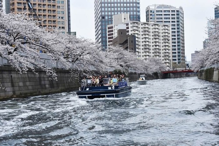 『目黒川の桜を船から見ると、とてもいいらしいわよ!』
