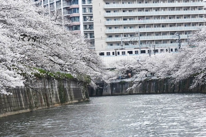 それから計算すると、今年の目黒川の「花筏」は「4月14日頃」になりそうだ。