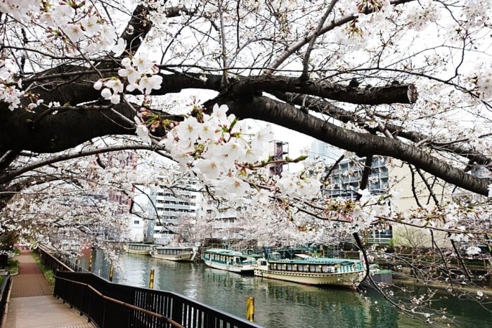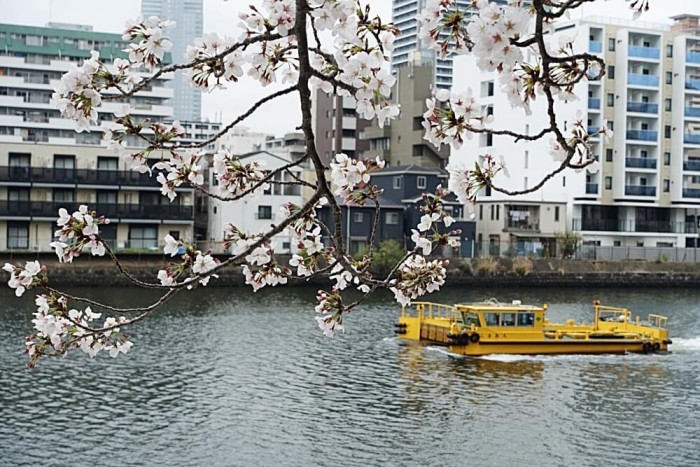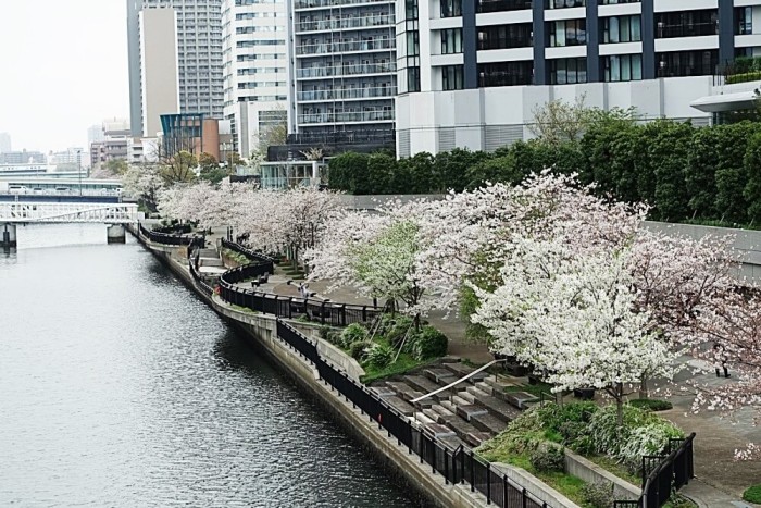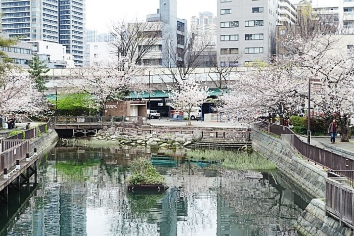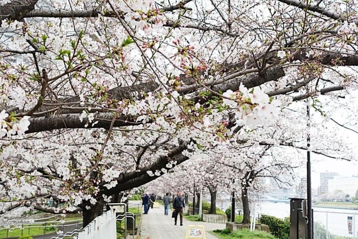 その広い水路の両側に、桜並木がある。対岸はもう江東区である。