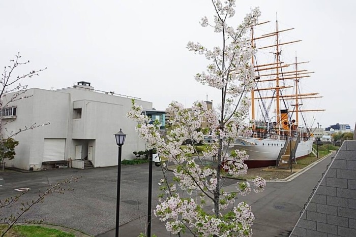 そこに上り明治丸の写真を撮った。本当は明治丸の後方に植えられている桜を入れた写真を撮るのが希望だったのである。