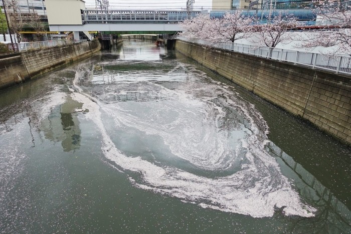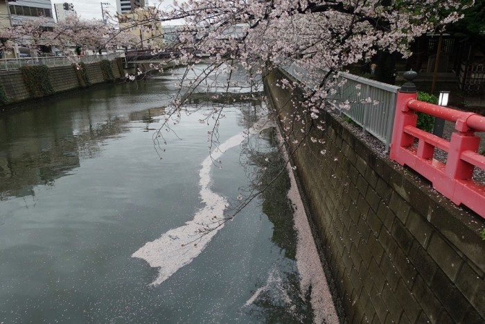 そこで今年の桜の最後を締めくくるために、目黒川の花筏の写真を撮りに行った。
