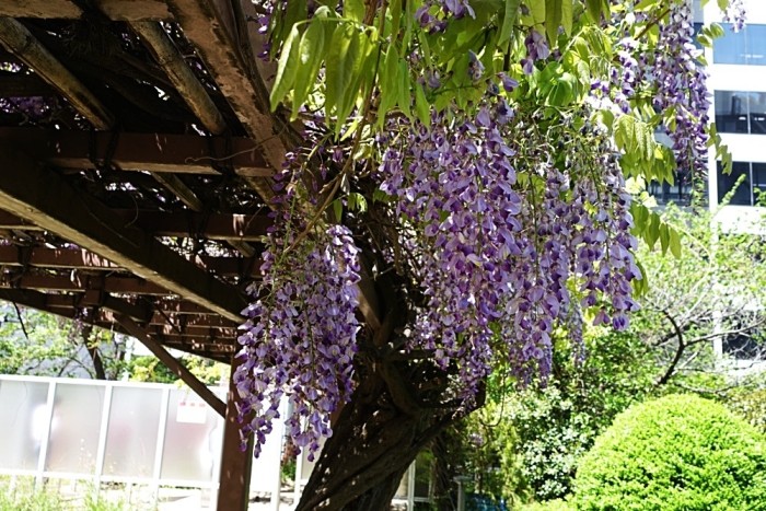奥に「藤棚」が見える。丁度、藤の花が満開で、とても綺麗だ。