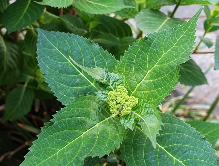 小さなアジサイをよく見たら、小さな蕾が出来ていた。