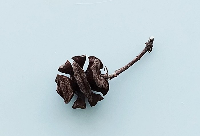 新緑の時も良い。秋の紅葉も良い。今回はカリンの花を見に行ったのだが、地面に沢山のメタセコイアの種の殻が落ちていた。