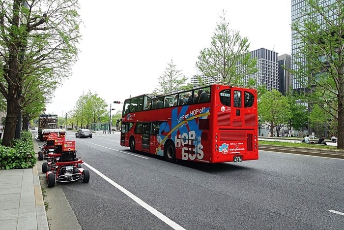 東京駅の行幸道路の「オープン・スカイバスとマリオカート」