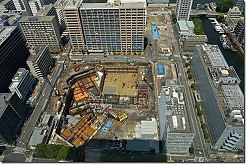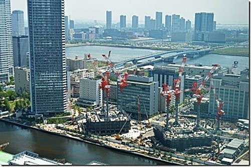 我が家の裏手の運河を挟んだ向こう側には、高層マンションが2棟建設中である。