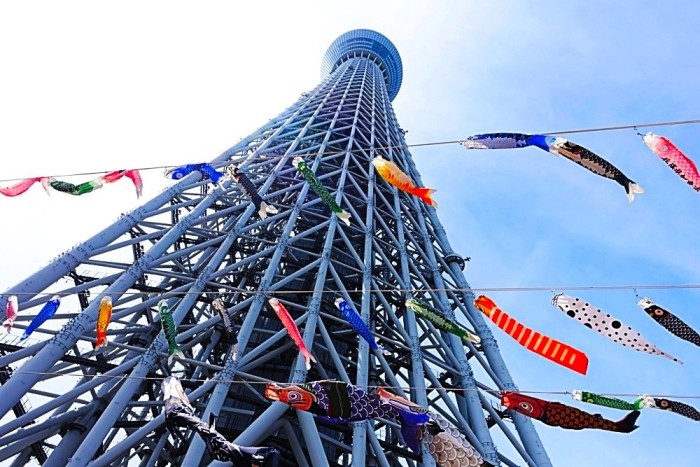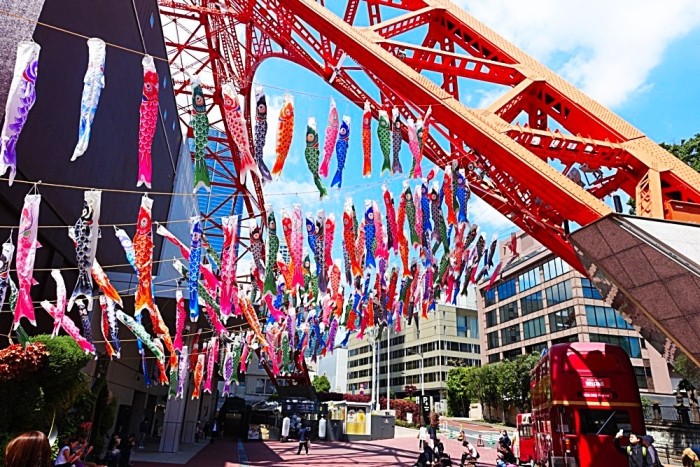 遊歩道に沿って飾られた「鯉のぼり」は、東京タワーの「鯉のぼり」とは全く違う。