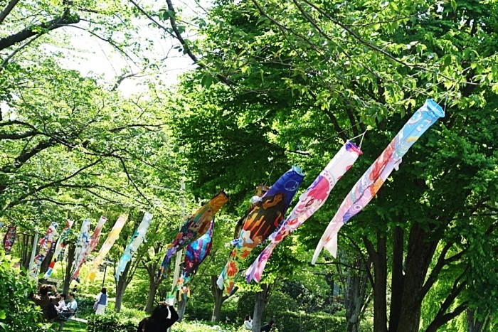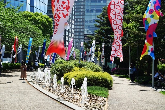 噴水のある場所では「鯉のぼり」も休んでいる。
