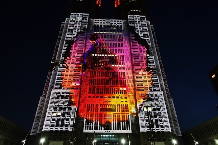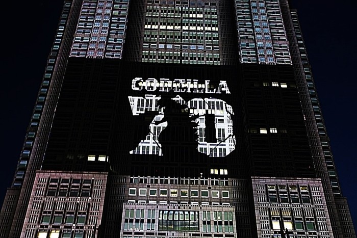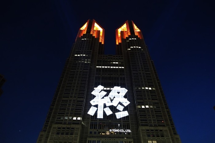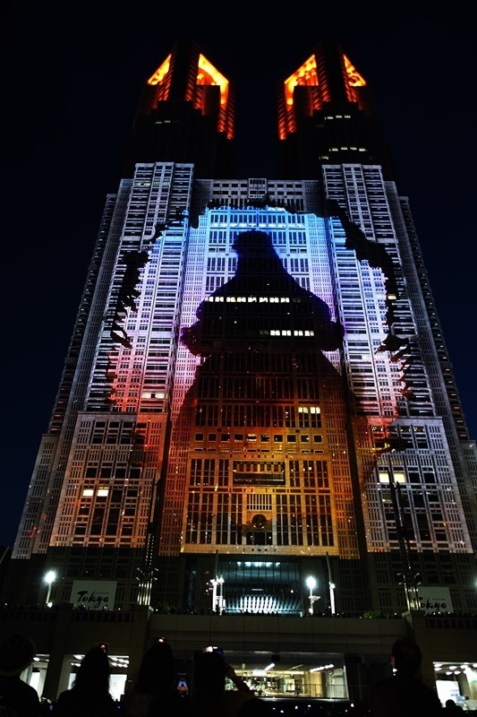 都庁の壁面に白黒で、「GODZILLA」とタイトルが映し出された。