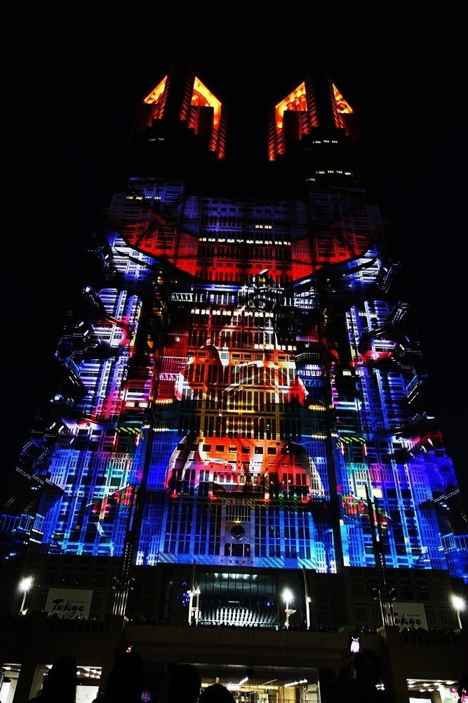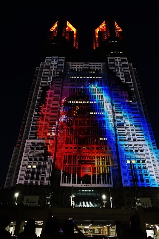 東京都の説明によると、『都庁壁面に実物大のスケールで投影された大迫力のゴジラが、「スーパーX2改」を相手に見せる大立ち回りは必見です』とある。