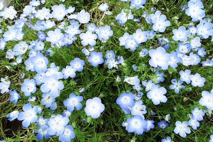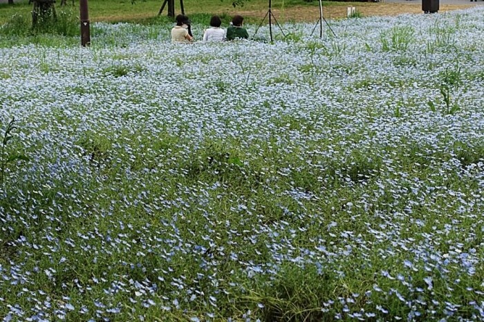 かなり歩いて、ネモフィラの花壇に着いた。しかし考えていたより、かなり狭い。