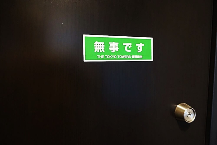 1フロアに21と22の部屋があるが、誰が住んでいるか分からない。防災訓練の日は部屋のモニターに、管理会社から「防災訓練です』とスピーカーから音声が届く。その時は部屋のドアの外に、「無事です」とプレートを出すことになっている。