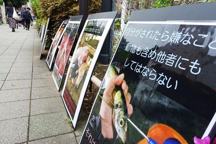 そんな生活をするのは個人の勝手だが、地下鉄駅から築地市場へ続く道端で主張をするのは、築地市場への嫌がらせのようでやり過ぎだ。最近は欧米から来る「キャンセルカルチャー」なども問題だが、自分の主義主張を押し付けないで欲しいと思う。