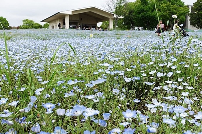 ネットニュースで舎人公園のネモフィラの写真を見た。