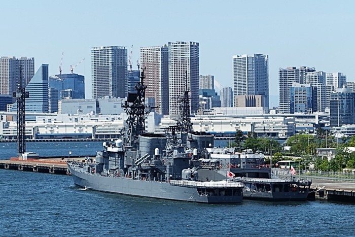 晴海埠頭に海上自衛隊の艦船が停泊しているのが見えた。
