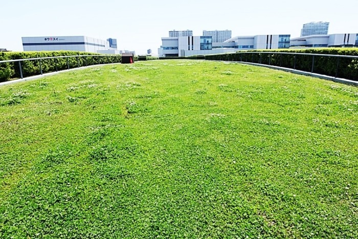 そこは水産仲卸棟の「6街区」の屋上で、クロバーの広場が区切られて4つある。