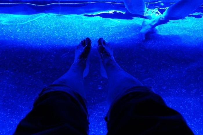 靴と靴下を脱ぎ、お湯に足を入れた。暖かいお湯が、少し流れているようだ。
