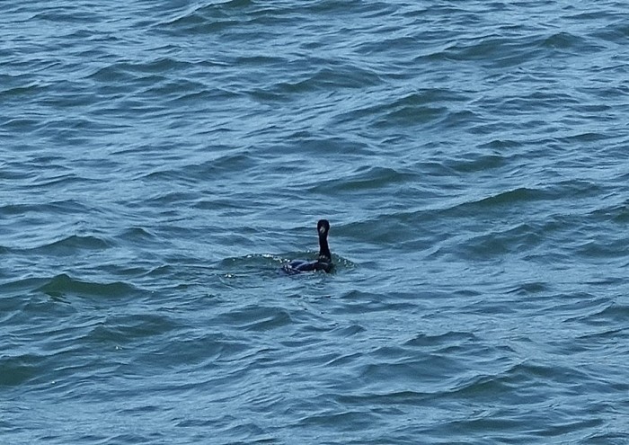 すると偶然にも、川鵜が水中から顔を出した。なにか獲物を捕ったようだった。