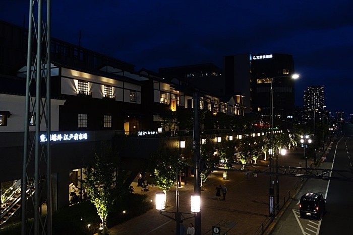 マンションのデジカメクラブの友人が、ここの8階にある「千客万来展望足湯」から撮影した写真を送ってくれた。なかなか上手な写真だった。そこで私は昼間しか知らないので、夜の足湯を試しに行った。