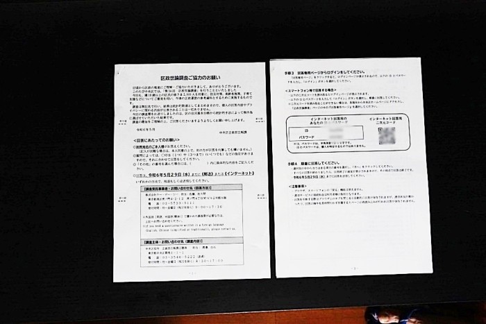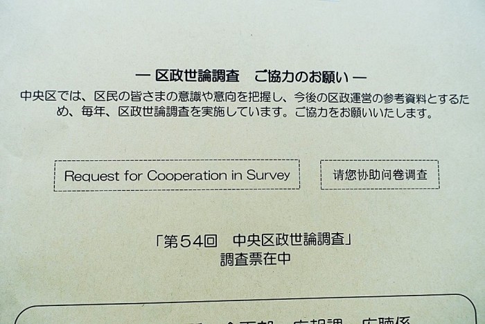 中央区が「区政世論調査」を行うことになり、区民から2000人が選ばれた。