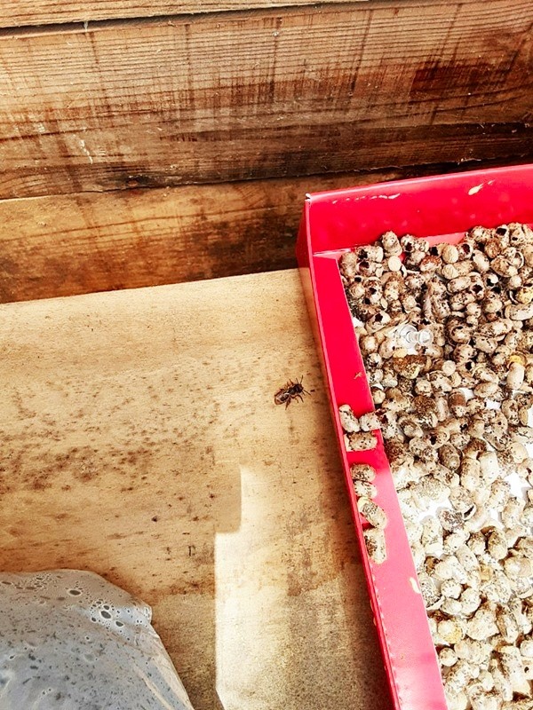 Xさん『マメコバチはサクランボとリンゴの受粉に利用するハチで、ハエより大きくアブより小さい。マメコバチは青森の知り合いから買っている。買った時は繭の状態で、適切な時期まで冷蔵庫で保管しておく』
