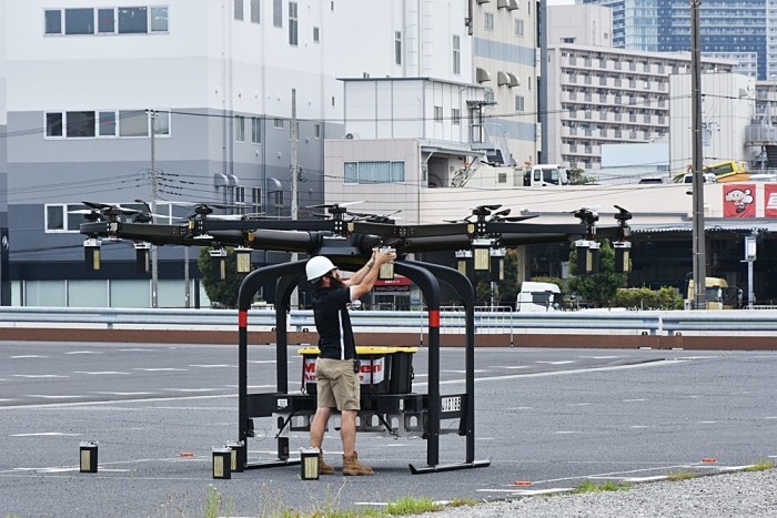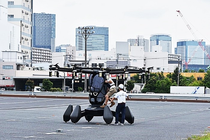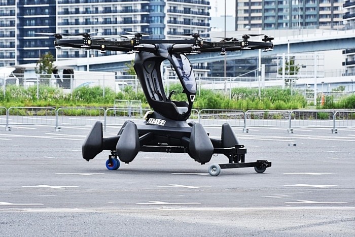 駐車場にはどうみても「空飛ぶクルマ」ではなく、ドローンが置いてあった。