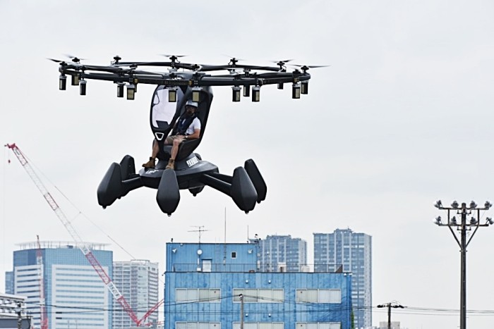 すると先ほどのドローンではなく、本物の空飛ぶクルマが登場した。